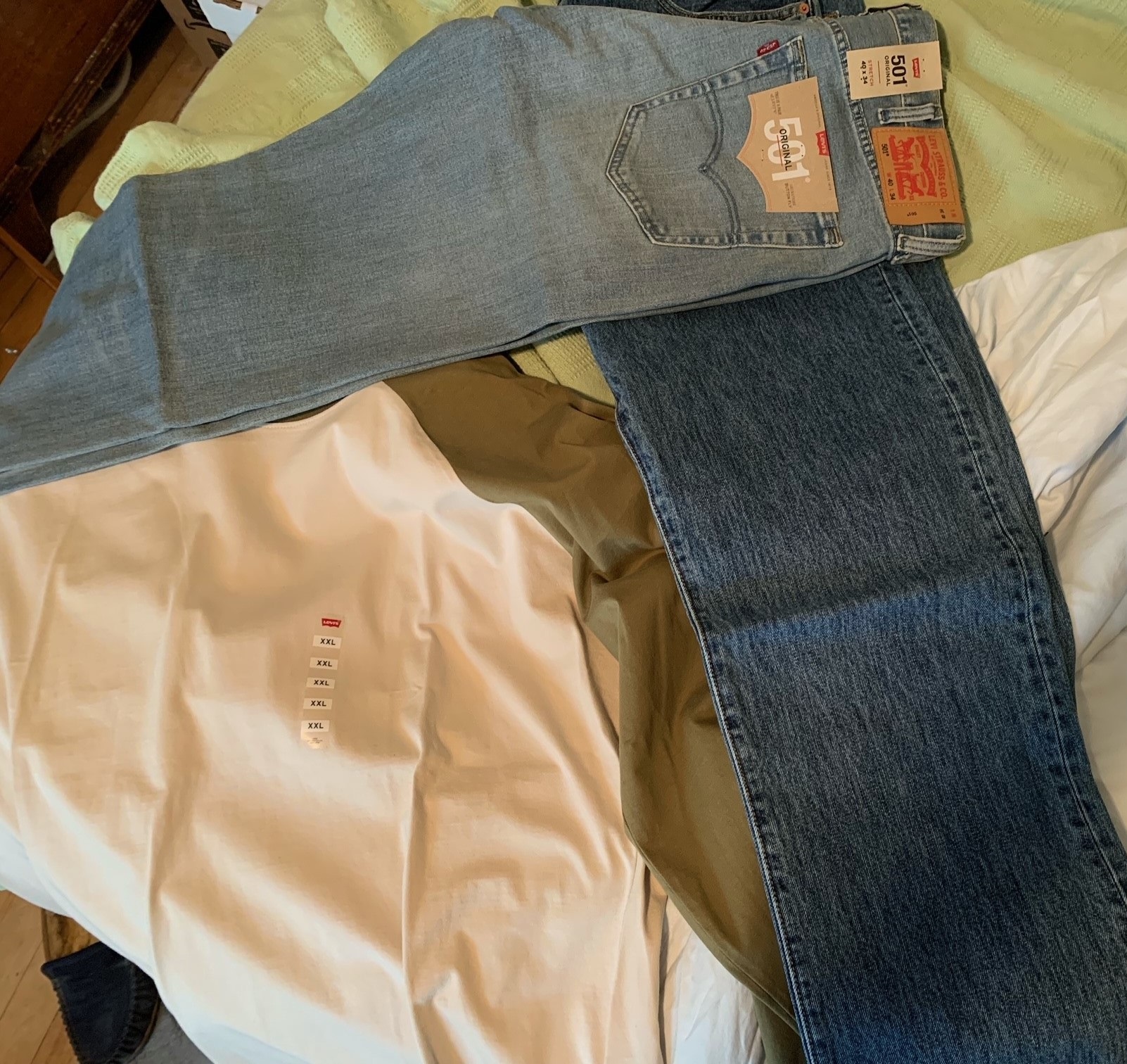 Last week I ordered 2 pairs of buttonflies and a ¾ tee, all on sale. I saved $80! And now I have new jeans, unspoiled by my last job's wear and tear. The shirt was less than ten bucks, which is amazing...